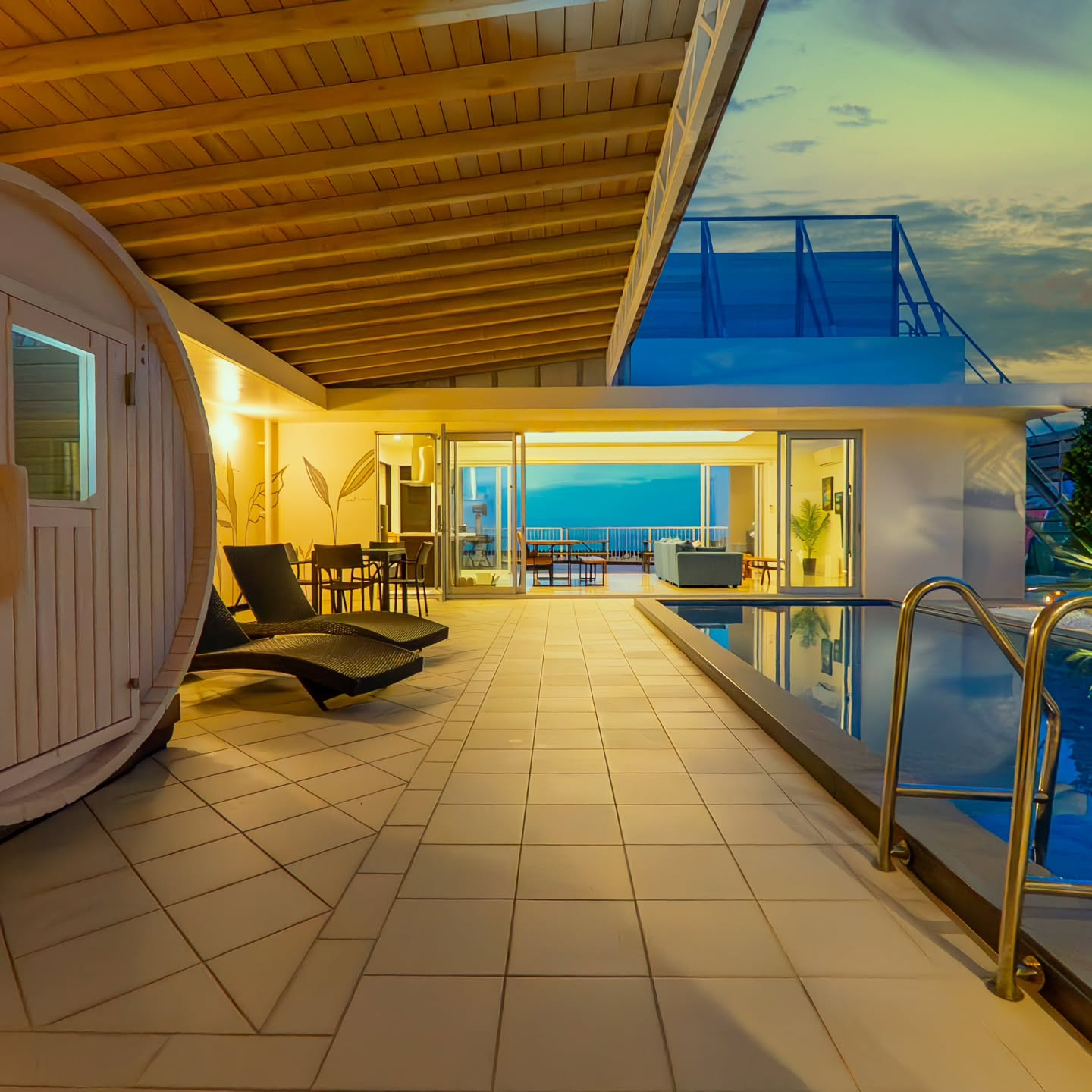 夜にはライトアップされたプールサイドで語らいながら、南国らしいゆったりとした時間を満喫できます。