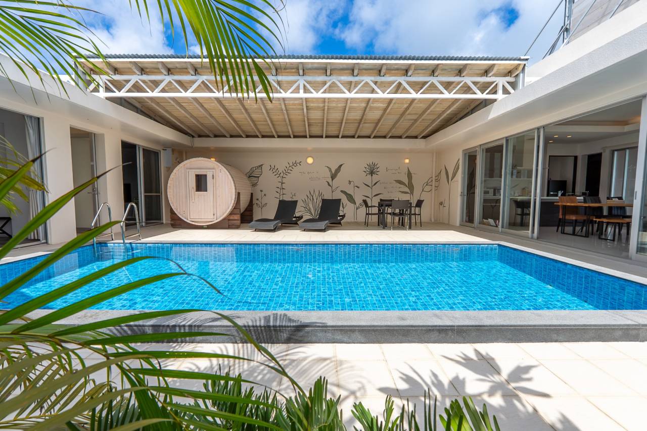海を一望できる広々としたテラスで、景色を楽しみながらリラックスする時間をお楽しみいただけます。夜には見上げれば満点の星空が広がり輝きを間近に感じられます。また、ヴィラにはプライベートプールがあり、周りの視線を気にせずに優雅なひとときを過ごせるだけでなく、そばには景色を堪能しながら乗れる木製ブランコもご用意しております。